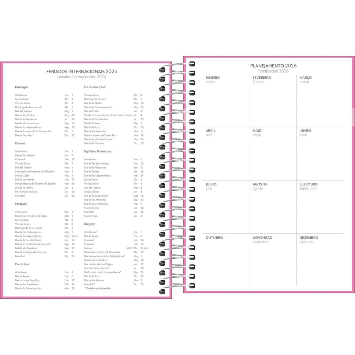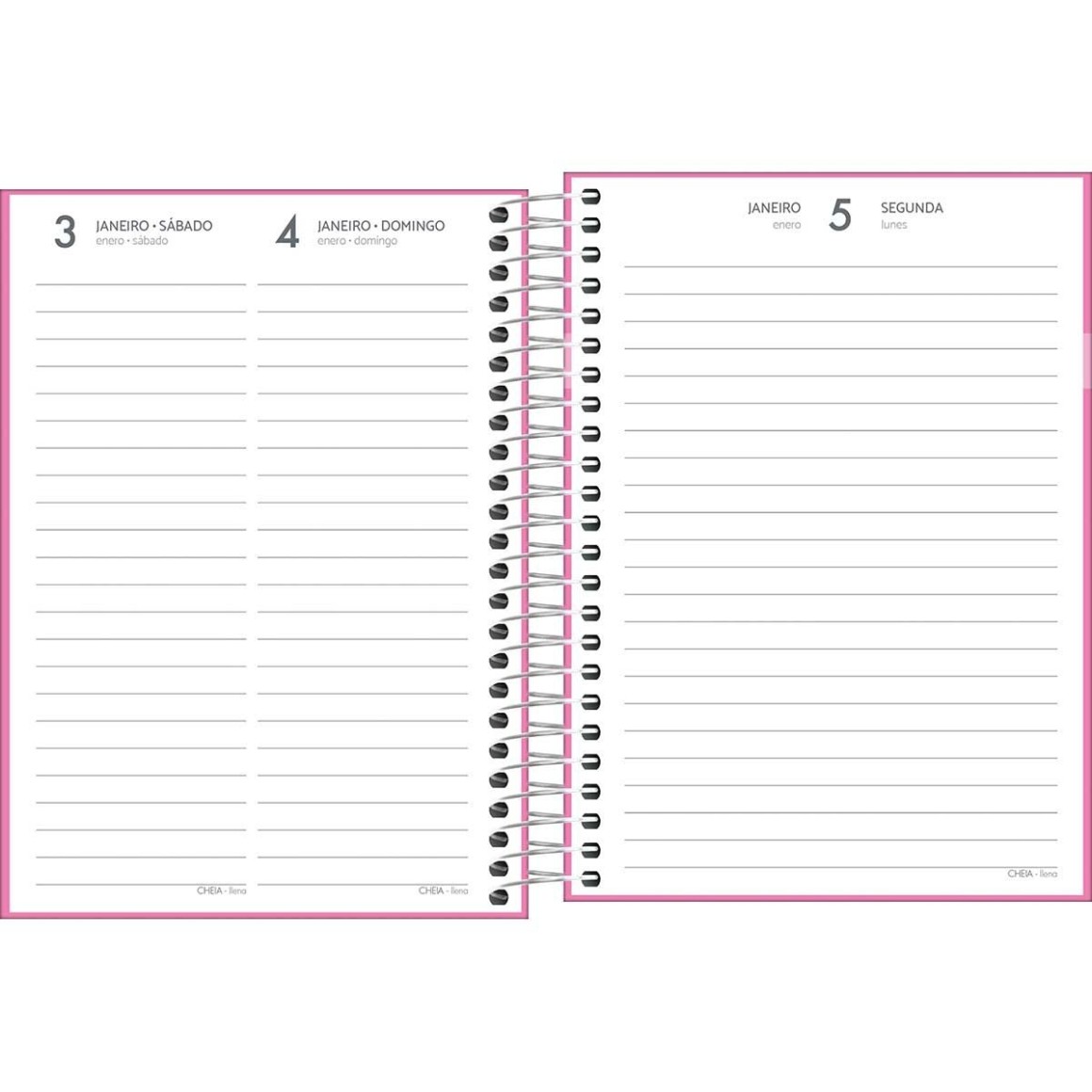 Agenda espiralada com visão de 1 dia por página, exceto sábado e domingo. Possui capa dura e bolsa plástica para guardar trabalhos e anotações. Ideal para a organização do dia a dia.