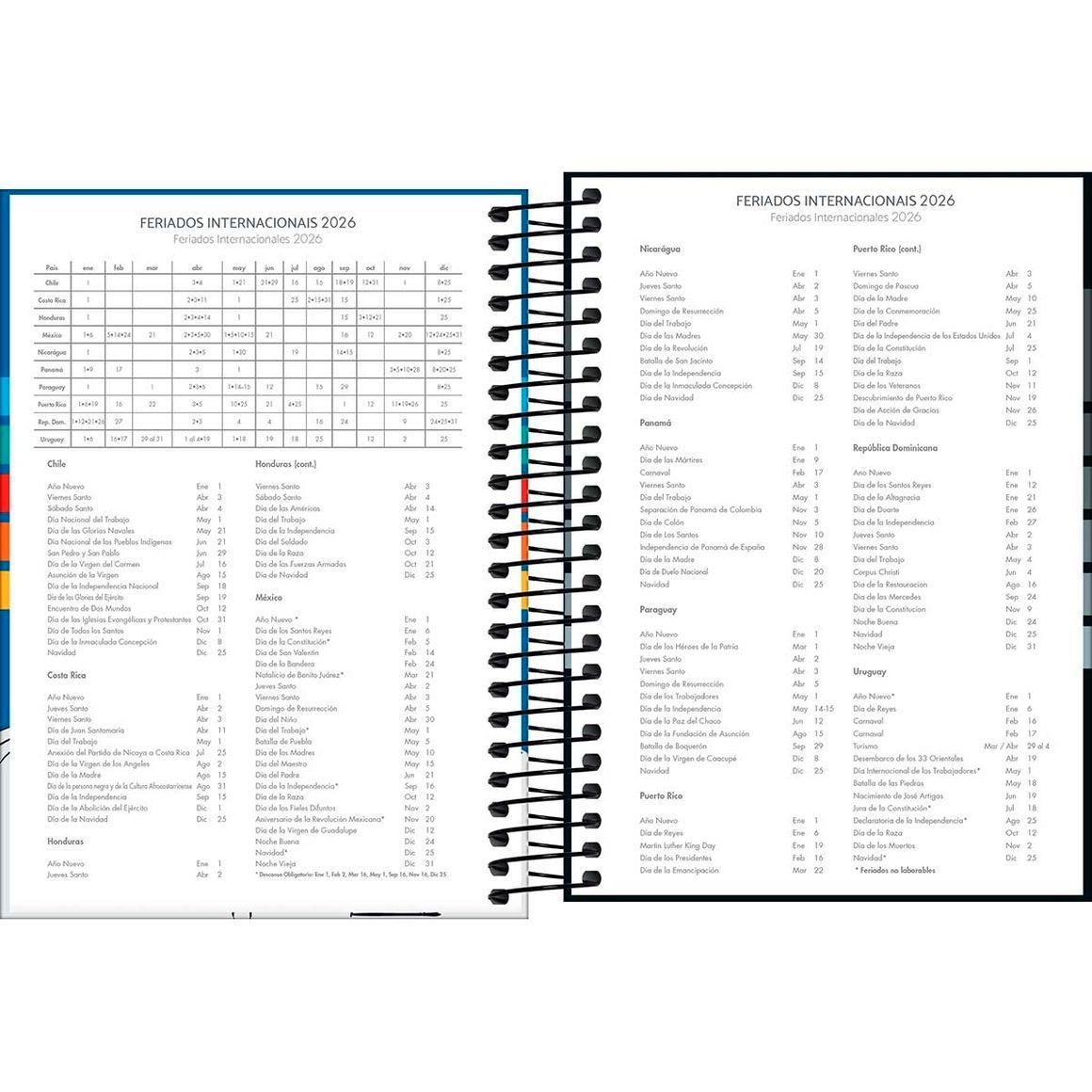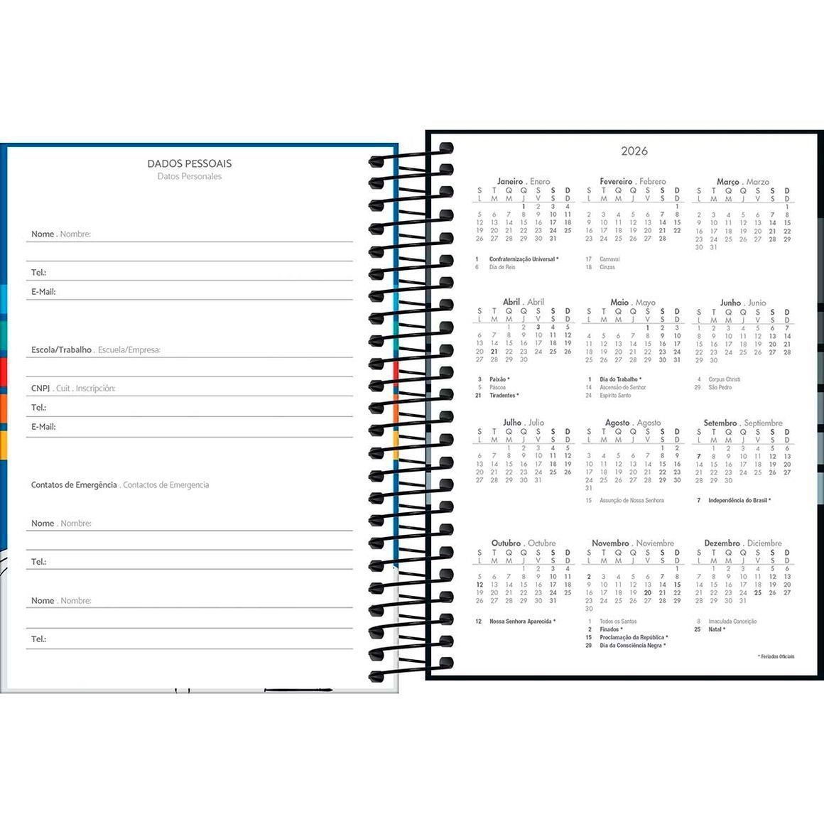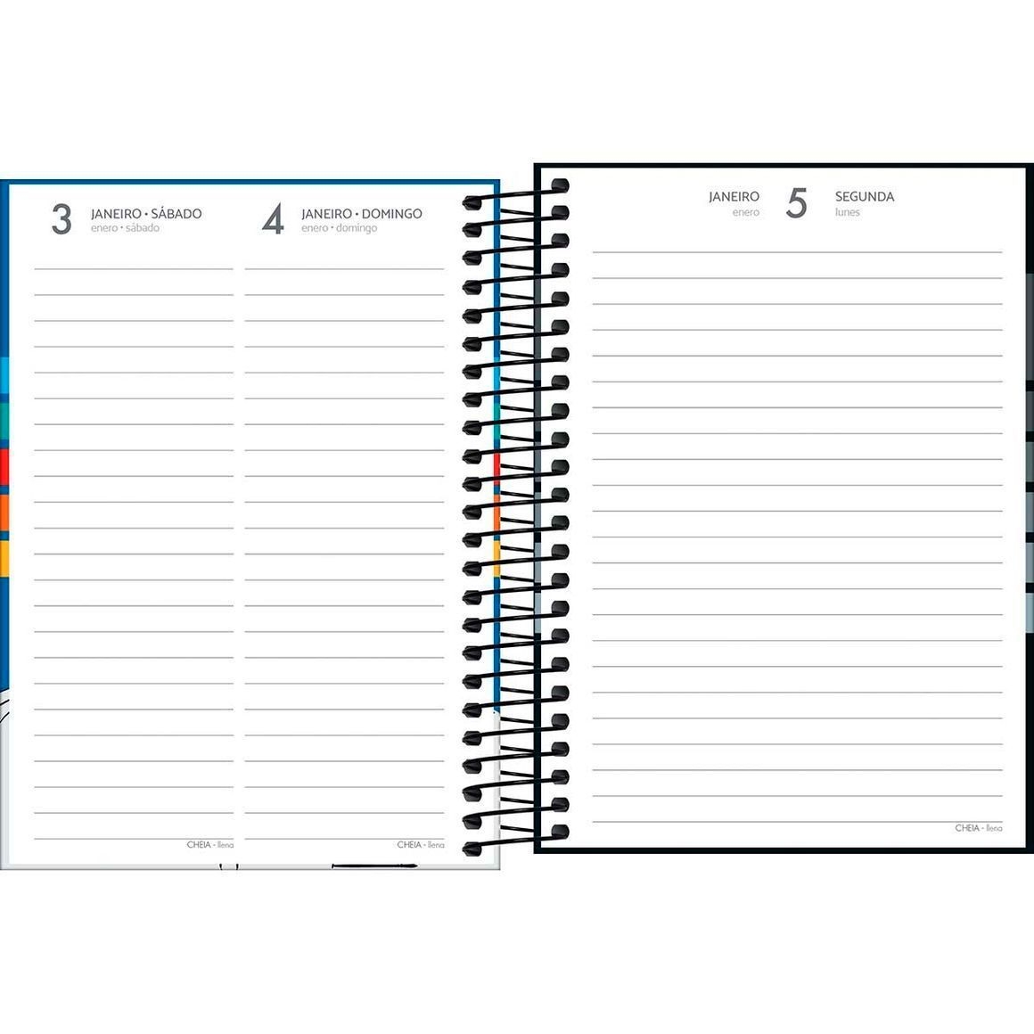 Agenda capa dura, espiralada com visão de 1 dia por página, exceto sábado e domingo. Ideal para a organização do dia a dia.