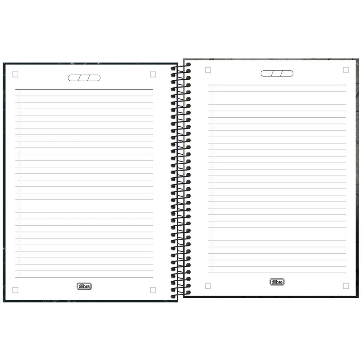Use este modelo, com capa dura e parte interna decorada, bolsa de papel para guardar trabalhos, adesivos, folhas pautadas e espiral preto, para anotar as aulas, fazer resumos, listar tarefas e organizar as ideias de forma prática e eficiente.