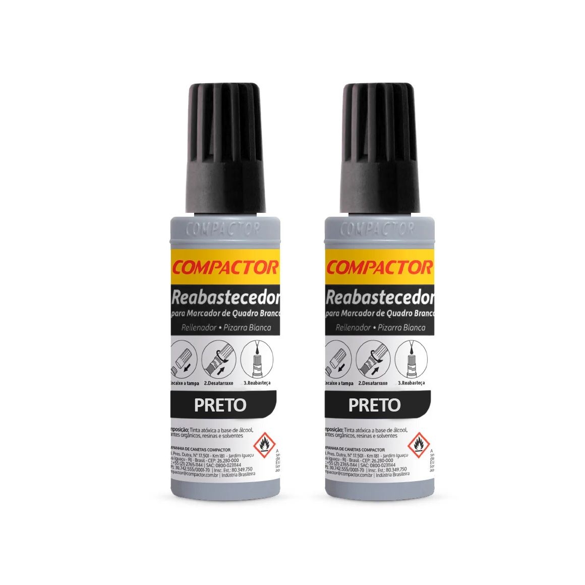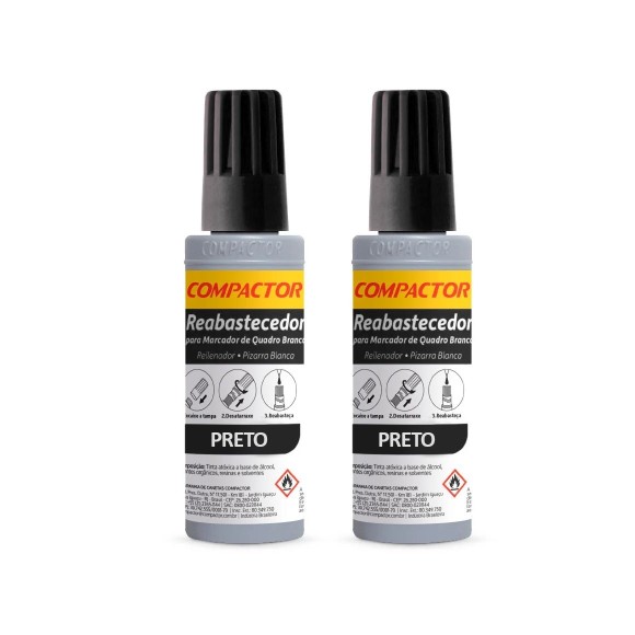 Kit Reabastecedor Marcador Quadro Branco Preto 30ml 2 Unidades - Compactor