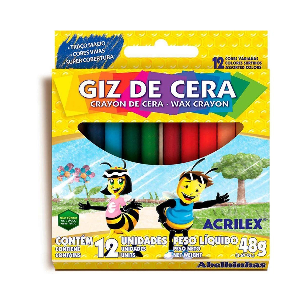 Fabricado com ceras de alta qualidade, o giz de cera Acrilex é ideal para para uso na pré-escola e em trabalhos escolares diversos feitos em papel, papel cartãoo e cartolina.