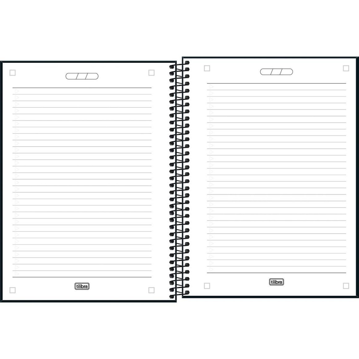 Use este modelo, com capa dura e parte interna decorada, bolsa de papel para guardar trabalhos, adesivos, folhas pautadas e espiral preto, para anotar as aulas, fazer resumos, listar tarefas e organizar as ideias de forma prática e eficiente.